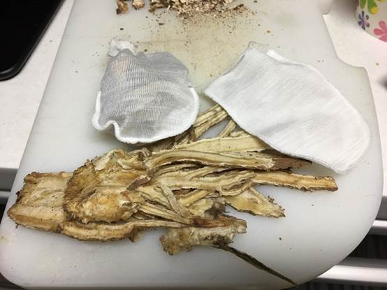 接下來把當歸裝入棉布包裡。