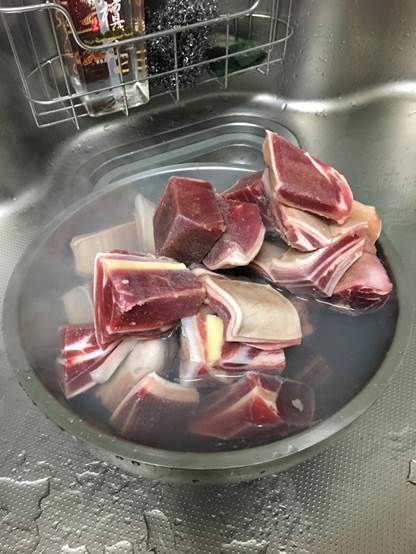 解凍後,請燙去血水。