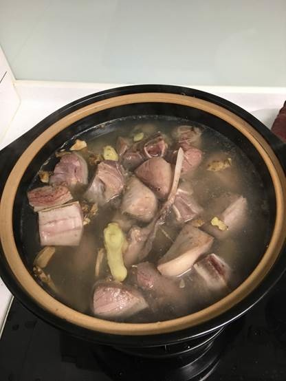 然後砂鍋或鑄鐵鍋是很重要的,羊肉好不好吃就看它了。