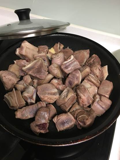 燙好血水後,如果想要肉更好吃,請準備炒鍋、或平底鍋,大火將羊肉表皮收起來,這樣肉質才不會鬆散,才會好吃。